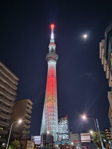 今、買い物へ年賀はがきと諸々買いに行った帰りに撮りました。 今夜のスカイツリーです 今日は赤色。サンタをイメージしたような、サンタスカイツリーですね。 今宵も月とツーショットです この光が射すスカイツリーwith Moon.今夜の抜群な癒やしです! 私の…